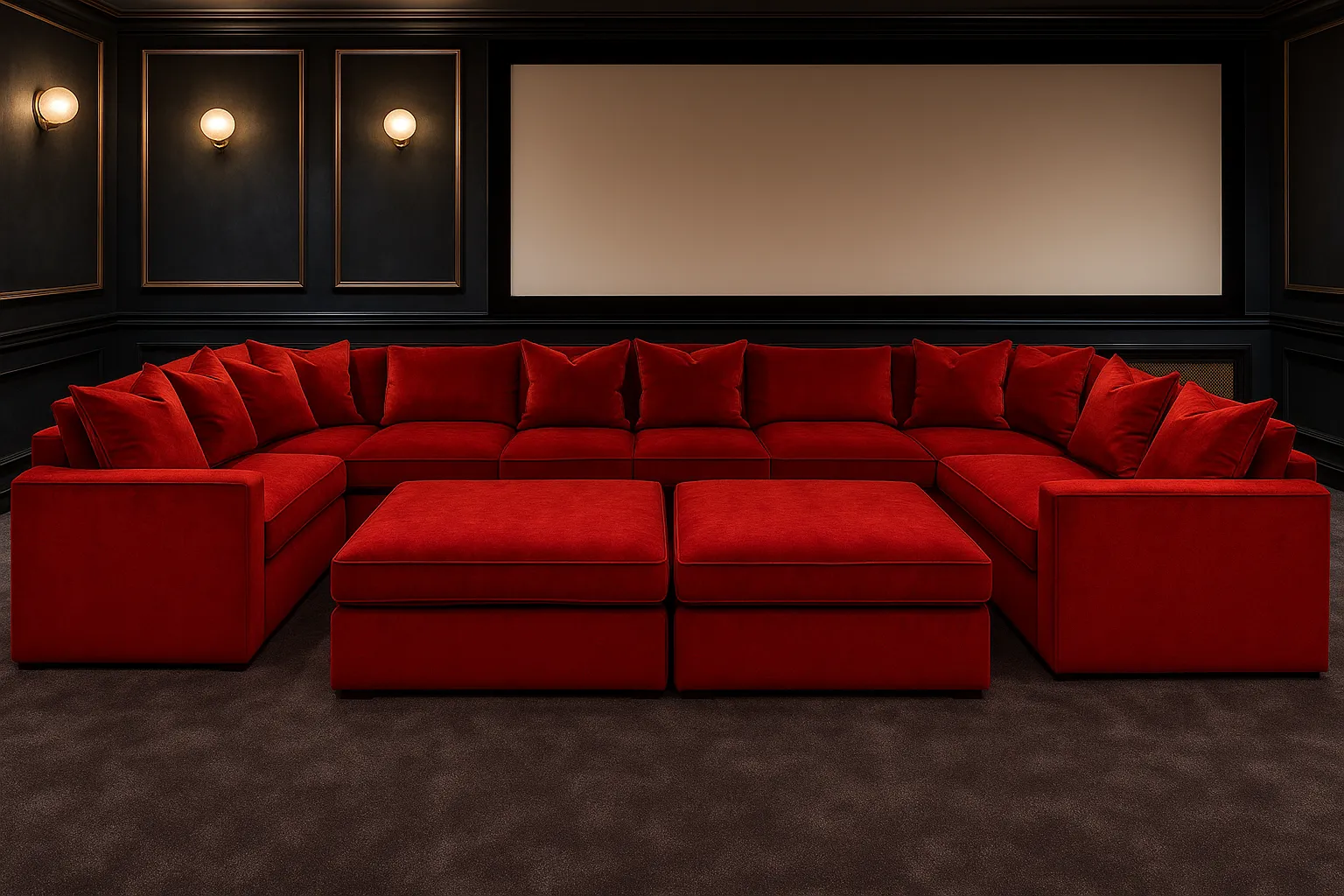 A luxurious, plush sofa designed for ultimate comfort during movie nights, combining style and durability for any living space.