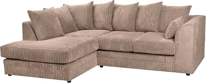 A stylish left-hand corner sofa in jumbo cord fabric, offering spacious seating, plush comfort, and durable construction for modern living rooms.
